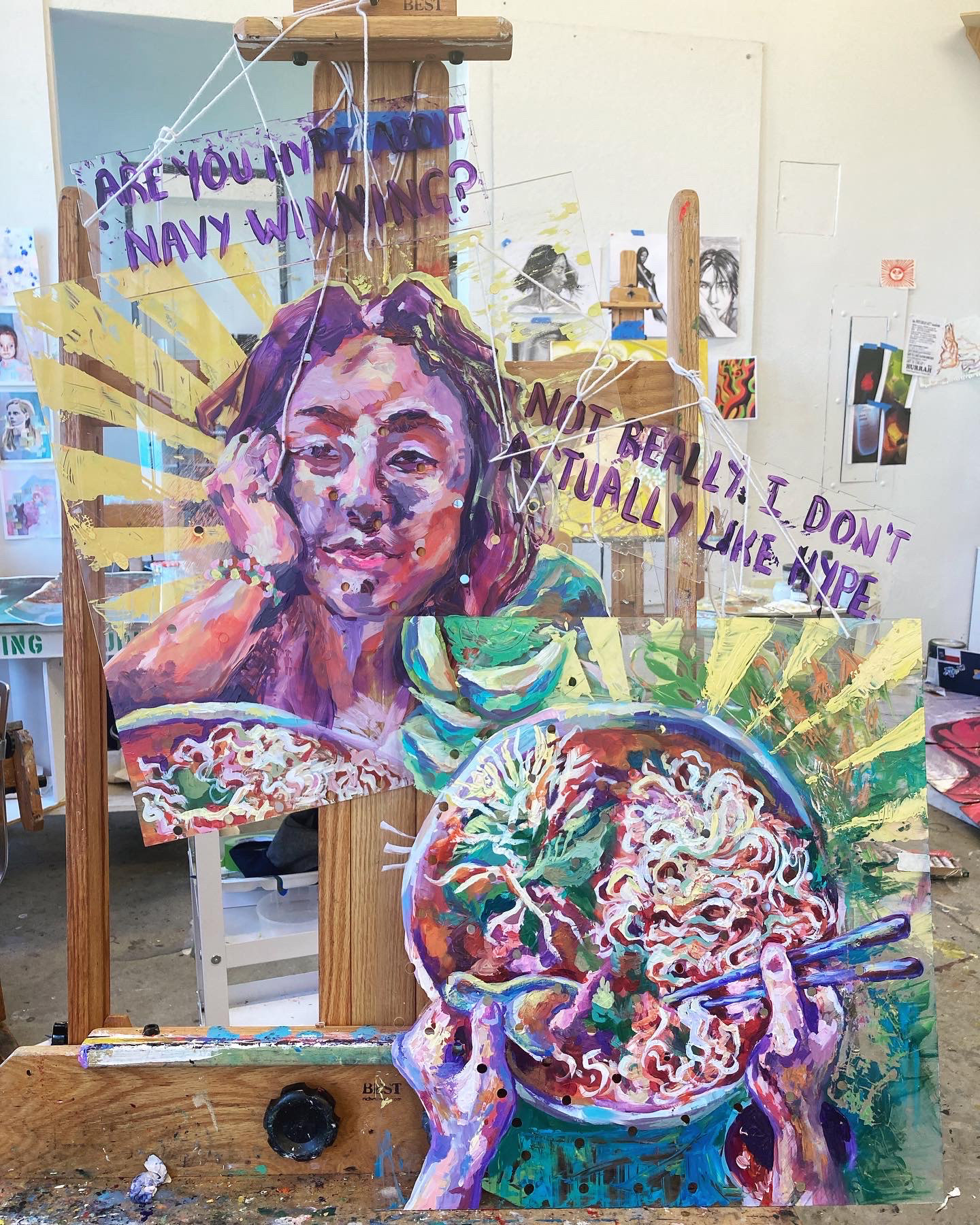 I experimented with a wall collage, diptych on acrylic, and a 3d comic laser cut onto a wooden box.